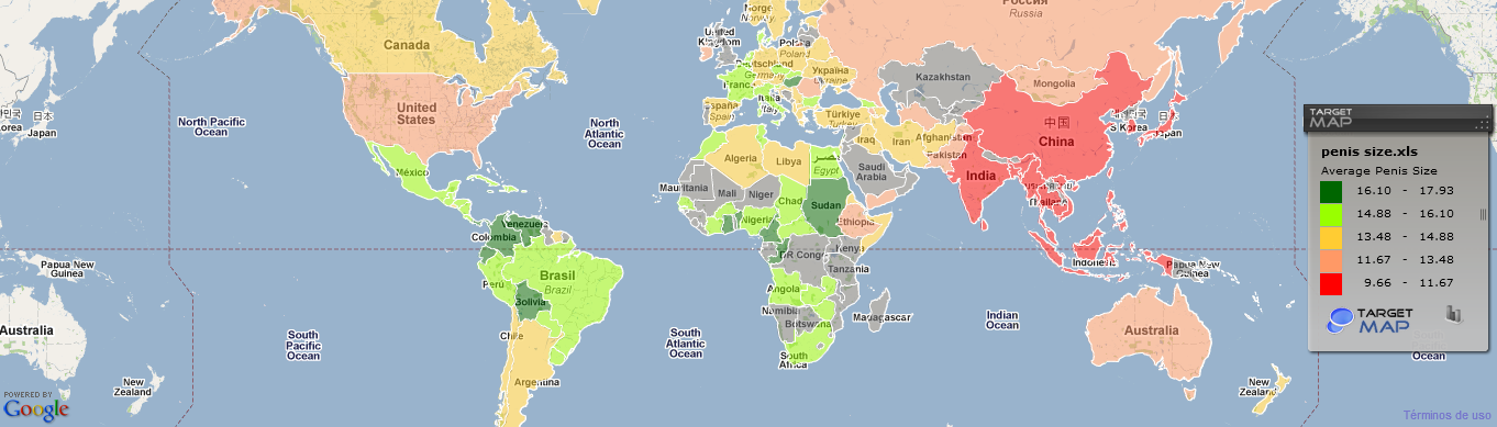 World Map of the Penis Size Worldwide